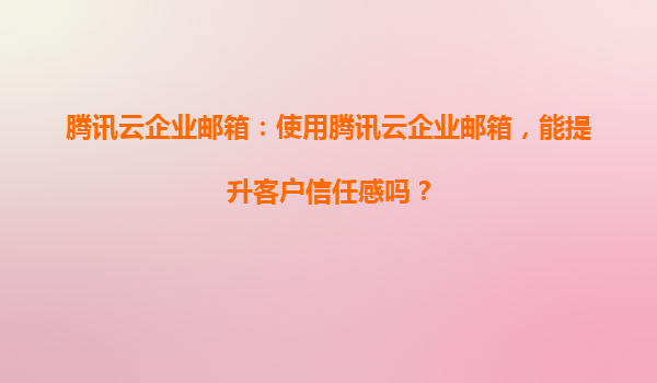 2025-04-01騰訊云企業(yè)郵箱:如何借助技術(shù)與服務(wù)提升客戶信任感? 一、品牌與技術(shù)雙驅(qū)動的信任基石 作為騰訊云生態(tài)體系的核心產(chǎn)品,企業(yè)郵箱天然具備“騰訊系”品牌背書。數(shù)據(jù)顯示,超過80%的企業(yè)在選擇云服務(wù)時會...