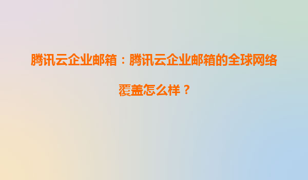 2025-04-01騰訊云企業(yè)郵箱的全球網(wǎng)絡(luò)覆蓋優(yōu)勢 在全球化商業(yè)環(huán)境下,企業(yè)通信的穩(wěn)定性和高效性直接影響業(yè)務(wù)發(fā)展。騰訊云企業(yè)郵箱憑借其強(qiáng)大的全球網(wǎng)絡(luò)覆蓋能力,為跨國企業(yè)、跨境團(tuán)隊(duì)提供了無縫連接的郵箱服務(wù)體驗(yàn)。 ...