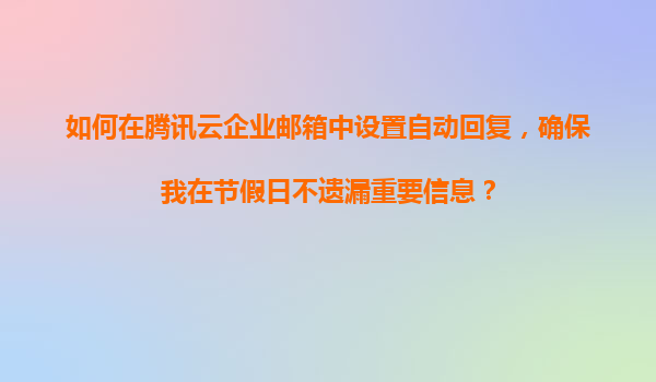 2025-11-23如何在騰訊云企業(yè)郵箱中設置自動回復,確保節(jié)假日不遺漏重要信息 一、騰訊云企業(yè)郵箱的自動回復功能優(yōu)勢 騰訊云企業(yè)郵箱作為國內(nèi)領先的企業(yè)級郵件服務,其自動回復功能不僅操作簡便,還具備以下核心優(yōu)勢: ...