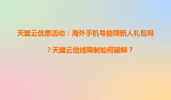 2025-04-03天翼云海外用戶指南:新人禮包領取與地域限制解決方案 一、海外手機號能否領取天翼云新人禮包? 根據(jù)天翼云官方政策,新用戶需通過中國大陸手機號+實名認證完成注冊方可領取新人禮包。 ...