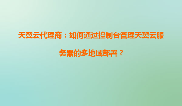 2025-03-31天翼云代理商:如何通過控制臺(tái)管理天翼云服務(wù)器的多地域部署? 一、天翼云多地域部署的核心優(yōu)勢(shì) 作為國(guó)內(nèi)領(lǐng)先的云服務(wù)提供商,天翼云憑借其獨(dú)特的資源布局和技術(shù)能力,為代理商及企業(yè)用戶提供了高...