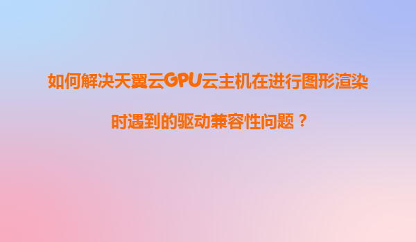 2025-11-04如何解決天翼云GPU云主機在進行圖形渲染時遇到的驅動兼容性問題? 一、引言 隨著云計算技術的快速發(fā)展,GPU云主機因其強大的并行計算能力,被廣泛應用于圖形渲染、深度學習、科學計算等領域。...