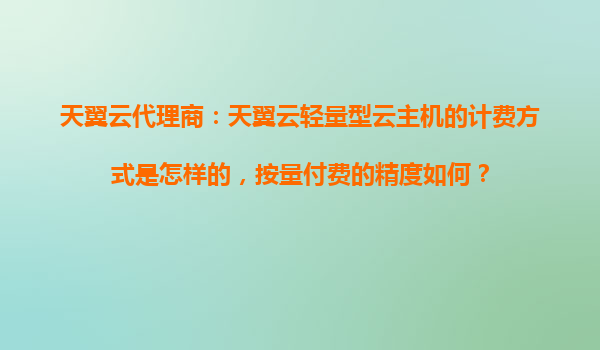 2025-10-31天翼云代理商解析:輕量型云主機計費方式與按量付費精度詳解 一、天翼云輕量型云主機計費模式 天翼云輕量型云主機作為面向中小企業(yè)和開發(fā)者的普惠型云計算服務(wù),提供靈活彈性的計費方案...