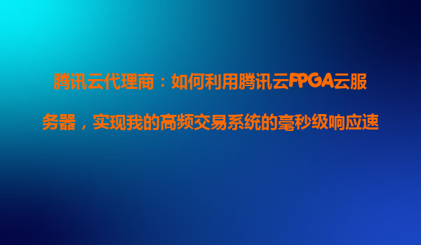 騰訊云代理商:如何利用騰訊云FPGA云服務(wù)器,實(shí)現(xiàn)高頻交易系統(tǒng)的毫秒級(jí)響應(yīng)速度?