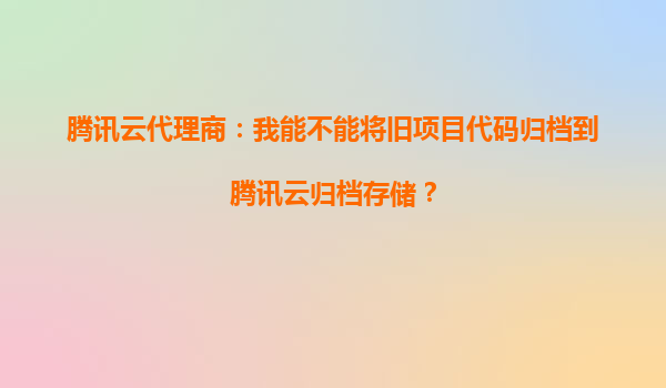 2025-09-25騰訊云代理商:我能不能將舊項目代碼歸檔到騰訊云歸檔存儲? 一、騰訊云歸檔存儲的適用場景 騰訊云歸檔存儲(CloudArchiveStorage,CAS)是一種低成本、高可靠的數(shù)據(jù)存儲服務(wù),適用于...