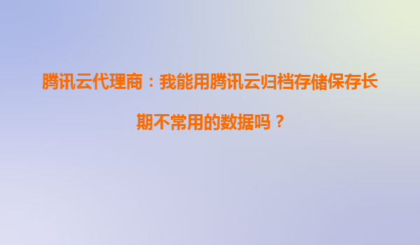 2025-09-24騰訊云代理商:我能用騰訊云歸檔存儲(chǔ)存檔財(cái)務(wù)報(bào)表嗎? 一、騰訊云歸檔存儲(chǔ)的適用性 作為騰訊云代理商,我們經(jīng)常被客戶詢問:“能否用騰訊云歸檔存儲(chǔ)(CloudArchiveStorage,CAS)來存...