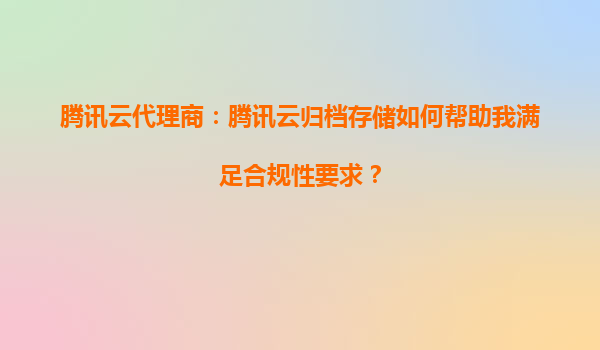 4008-020-360 騰訊云代理商:騰訊云歸檔存儲(chǔ)如何幫助企業(yè)滿足合規(guī)性要求? 引言 在數(shù)字化時(shí)代,數(shù)據(jù)已成為企業(yè)的核心資產(chǎn)之一。隨著數(shù)據(jù)量的爆炸式增長,如何安全、合規(guī)地存...