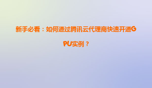 2025-11-12騰訊云GPU實例快速開通指南:代理商助您高效上云 本文為新手用戶詳細(xì)解析如何通過騰訊云代理商快速開通GPU實例,同時結(jié)合騰訊云的技術(shù)優(yōu)勢和服務(wù)亮點,幫助您輕松實現(xiàn)高性能計算需求。 一、為什么...