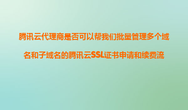 2025-11-08騰訊云代理商如何高效管理多域名與子域名的SSL證書申請(qǐng)與續(xù)費(fèi)? 一、騰訊云代理商的SSL證書管理核心價(jià)值 騰訊云認(rèn)證代理商作為專業(yè)技術(shù)服務(wù)商,能夠?yàn)槠髽I(yè)用戶提供批量域名及子域名的SSL證書全生命周期管理...