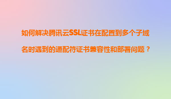 2025-11-08如何解決騰訊云SSL證書在配置到多個(gè)子域名時(shí)遇到的通配符證書兼容性和部署問題? 一、問題背景與需求分析 隨著企業(yè)業(yè)務(wù)擴(kuò)展,多子域名場(chǎng)景(如官網(wǎng)、API、CDN等)對(duì)SSL證書的需求日益增...