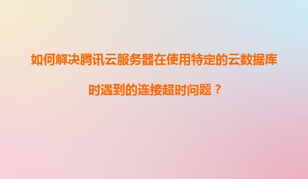 2025-11-07如何解決騰訊云服務(wù)器在使用特定的云數(shù)據(jù)庫時遇到的連接超時問題? 一、問題背景分析 在使用騰訊云服務(wù)器(CVM)連接特定的云數(shù)據(jù)庫(如TencentDBforMySQL、Redis等)時,連接超時是開發(fā)者常遇到的問題。...