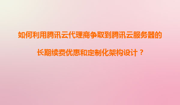 2025-11-05如何利用騰訊云代理商爭取到騰訊云服務(wù)器的長期續(xù)費優(yōu)惠和定制化架構(gòu)設(shè)計? 引言 在數(shù)字化轉(zhuǎn)型的大背景下,云計算已成為企業(yè)IT基礎(chǔ)設(shè)施的重要組成部分。騰訊云作為國內(nèi)領(lǐng)先的云服務(wù)提供商...