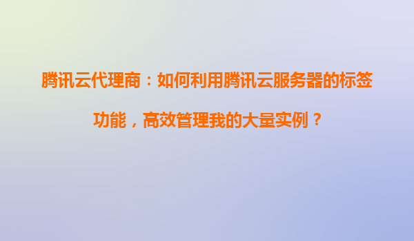 4008-020-360 騰訊云代理商:如何利用騰訊云服務(wù)器的標(biāo)簽功能,高效管理我的大量實(shí)例? 一、騰訊云標(biāo)簽功能的優(yōu)勢(shì)與核心價(jià)值 騰訊云標(biāo)簽(Tag)功能是為企業(yè)級(jí)用戶設(shè)計(jì)的資源分類工具,尤其適合代理商業(yè)場(chǎng)景下大規(guī)模實(shí)例的管理...