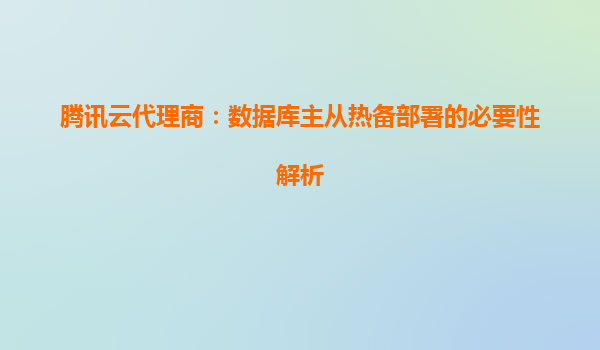 2025-04-27騰訊云代理商解析:數(shù)據(jù)庫主從熱備部署的必要性 一、數(shù)據(jù)庫主從熱備的核心價值 在數(shù)字化時代,數(shù)據(jù)庫作為企業(yè)核心業(yè)務的數(shù)據(jù)載體,其穩(wěn)定性直接影響用戶體驗與業(yè)務連續(xù)性。突發(fā)硬件故障、網絡中斷...