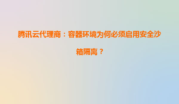 2025-04-26騰訊云代理商:容器環(huán)境為何必須啟用安全沙箱隔離? 一、容器環(huán)境的安全挑戰(zhàn)與隔離必要性 容器技術(shù)憑借輕量化和高資源利用率成為云原生應(yīng)用的核心載體,但共享內(nèi)核架構(gòu)也帶來顯著安全隱患。未...