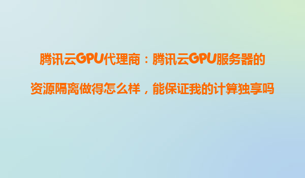 4008-020-360 騰訊云GPU代理商:騰訊云GPU服務(wù)器的資源隔離解析與計(jì)算獨(dú)享保障 引言 在人工智能、高性能計(jì)算和圖形渲染等領(lǐng)域,GPU服務(wù)器已成為不可或缺的計(jì)算資源。然而,多...