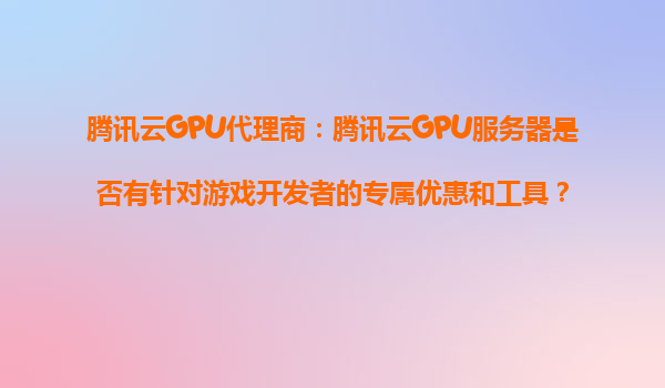 2025-10-29騰訊云GPU代理商:騰訊云GPU服務器是否有針對游戲開發(fā)者的專屬優(yōu)惠和工具? 一、騰訊云GPU服務器的核心優(yōu)勢 騰訊云作為國內領先的云計算服務商,其GPU服務器憑借高性能計算能力...