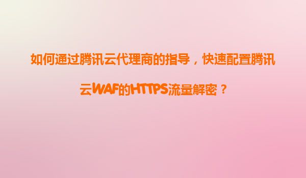2025-11-22如何通過騰訊云代理商的指導(dǎo)快速配置騰訊云WAF的HTTPS流量解密 一、騰訊云WAF簡(jiǎn)介與HTTPS解密的重要性 騰訊云Web應(yīng)用防火墻(WAF)是一款專業(yè)的網(wǎng)絡(luò)安全防護(hù)產(chǎn)品,能夠有效防御SQ...