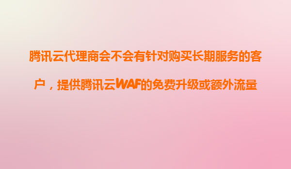 4008-020-360 騰訊云代理商是否會(huì)為長(zhǎng)期服務(wù)客戶提供WAF免費(fèi)升級(jí)或額外流量?深度解析合作優(yōu)勢(shì) 一、騰訊云代理商的服務(wù)模式與價(jià)值 作為騰訊云生態(tài)體系的重要一環(huán),代理商在客戶服務(wù)中扮演著關(guān)鍵角色。不同于直接購(gòu)買,通...