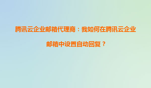 騰訊云企業(yè)郵箱代理商指南:如何在騰訊云企業(yè)郵箱中設(shè)置自動回復(fù)?