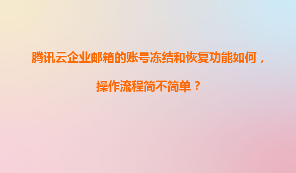 2025-11-21騰訊云企業(yè)郵箱賬號凍結(jié)與恢復(fù)功能詳解:便捷管理,高效安全 一、騰訊云企業(yè)郵箱的賬號凍結(jié)與恢復(fù)功能概述 騰訊云企業(yè)郵箱作為一款專業(yè)的企業(yè)級郵件服務(wù),提供了完善的賬號管理功能,其中賬...