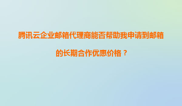 4008-020-360 騰訊云企業(yè)郵箱代理商能否幫助我申請(qǐng)到郵箱的長(zhǎng)期合作優(yōu)惠價(jià)格? 一、騰訊云企業(yè)郵箱的核心優(yōu)勢(shì) 騰訊云企業(yè)郵箱作為國(guó)內(nèi)領(lǐng)先的企業(yè)級(jí)郵箱服務(wù),擁有以下核心優(yōu)勢(shì): 高穩(wěn)定性和安全性:依...