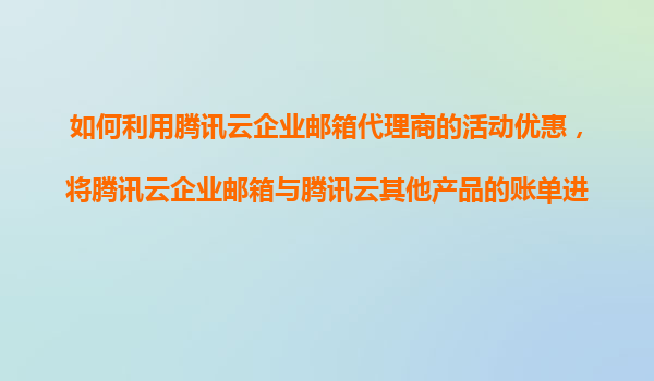 2025-11-13如何利用騰訊云企業(yè)郵箱代理商的活動(dòng)優(yōu)惠實(shí)現(xiàn)多產(chǎn)品賬單合并與套餐優(yōu)惠 一、騰訊云的核心優(yōu)勢(shì)解析 作為國(guó)內(nèi)領(lǐng)先的云計(jì)算服務(wù)商,騰訊云具備以下核心優(yōu)勢(shì): 生態(tài)整合能力:企業(yè)郵箱可與云服務(wù)...