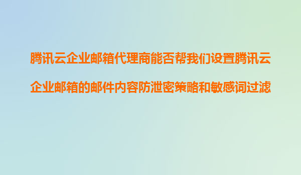 2025-11-14騰訊云企業(yè)郵箱代理商能否協(xié)助設(shè)置郵件內(nèi)容防泄密策略與敏感詞過(guò)濾? 在當(dāng)前的數(shù)字化辦公環(huán)境中,企業(yè)郵箱不僅是溝通工具,更是信息傳遞的核心渠道。郵件內(nèi)容的安全性直接影響企業(yè)商業(yè)機(jī)密和客戶數(shù)據(jù)的保護(hù)...