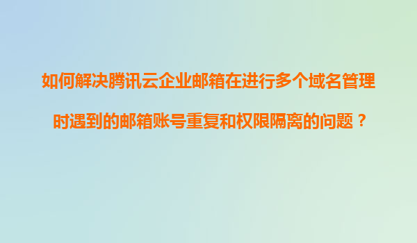 4008-020-360 騰訊云企業(yè)郵箱多域名管理問題的背景 在企業(yè)運(yùn)營過程中,隨著業(yè)務(wù)規(guī)模的擴(kuò)大,往往需要使用多個(gè)域名來區(qū)分不同的業(yè)務(wù)線或子公司。騰訊云企業(yè)郵箱作為一款功能強(qiáng)大的企業(yè)郵箱服務(wù),支持多域名管理,但同時(shí)也可能遇到...