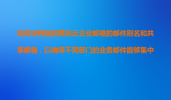 2025-11-11騰訊云企業(yè)郵箱高效管理方案 在數(shù)字化辦公場景中,通過合理配置郵件別名與共享郵箱功能,可顯著提升跨部門協(xié)作效率。騰訊云企業(yè)郵箱憑借其穩(wěn)定架構(gòu)與智能管理工具,為企業(yè)提供了專業(yè)級的郵件集中處理解決方案。 一...