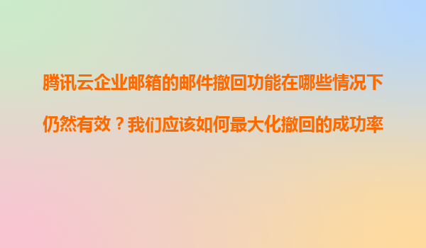 2025-11-11騰訊云企業(yè)郵箱郵件撤回功能的適用場景及成功率優(yōu)化 郵件撤回功能的核心價(jià)值 騰訊云企業(yè)郵箱提供的郵件撤回功能是企業(yè)高效溝通的重要保障。當(dāng)用戶誤發(fā)敏感信息、錯(cuò)發(fā)附件或內(nèi)容需修正時(shí),撤回功能可有效降...