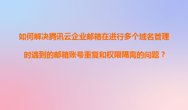 4008-020-360 如何解決騰訊云企業(yè)郵箱多域名管理中的郵箱賬號重復(fù)與權(quán)限隔離問題 一、問題背景與需求分析 隨著企業(yè)業(yè)務(wù)擴(kuò)張,多域名郵箱管理成為普遍需求。騰訊云企業(yè)郵箱在支持多個(gè)域名管理時(shí),可能...