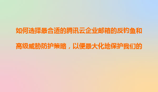 2025-11-11如何選擇最合適的騰訊云企業(yè)郵箱反釣魚和高級威脅防護(hù)策略 一、企業(yè)郵箱安全防護(hù)的重要性 在數(shù)字化轉(zhuǎn)型的浪潮中,企業(yè)郵箱已成為商務(wù)溝通的核心工具。然而,隨之而來的網(wǎng)絡(luò)釣魚、惡意軟件、數(shù)據(jù)泄露等威脅...