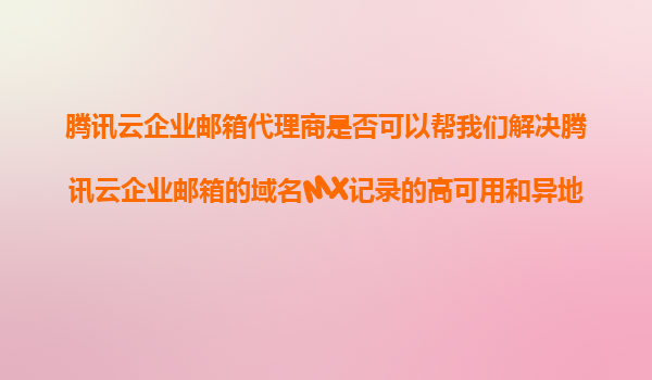 2025-11-11騰訊云企業(yè)郵箱代理商能否解決MX記錄高可用與異地災(zāi)備難題? 一、騰訊云企業(yè)郵箱的核心優(yōu)勢 騰訊云企業(yè)郵箱基于全球領(lǐng)先的云計(jì)算架構(gòu),具備以下核心能力: 全球節(jié)點(diǎn)覆蓋:依托騰訊云全球27個(gè)...
