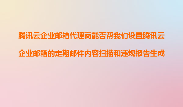2025-11-10騰訊云企業(yè)郵箱代理商能否幫我們設置定期郵件內(nèi)容掃描和違規(guī)報告生成? 一、騰訊云企業(yè)郵箱的合規(guī)管理需求 隨著企業(yè)對數(shù)據(jù)安全和合規(guī)管理的重視,定期郵件內(nèi)容掃描與違規(guī)報告生成已成為...