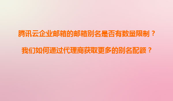 2025-11-10騰訊云企業(yè)郵箱別名數(shù)量限制與配額獲取指南 一、騰訊云企業(yè)郵箱別名功能介紹 企業(yè)郵箱別名是指用戶主郵箱賬號的附加名稱,可以接收發(fā)送到該別名的郵件,但無法直接用別名登錄或發(fā)送郵件。例如:主賬號為zhangsa...