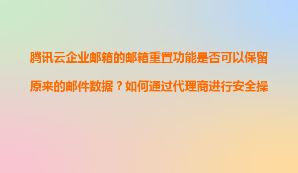 2025-11-09騰訊云企業(yè)郵箱郵箱重置功能解析:如何安全保留郵件數(shù)據(jù)及代理商操作指南 一、騰訊云企業(yè)郵箱重置功能與數(shù)據(jù)保留機(jī)制 在使用企業(yè)郵箱服務(wù)過程中,因員工離職、部門調(diào)整或安全管理需求,可能需要進(jìn)行賬號...