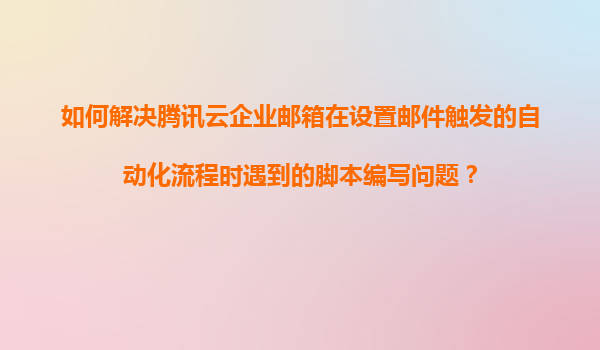 4008-020-360 如何解決騰訊云企業(yè)郵箱在設(shè)置郵件觸發(fā)的自動化流程時遇到的腳本編寫問題? 一、問題背景與場景分析 騰訊云企業(yè)郵箱作為企業(yè)級郵件服務(wù),提供了強(qiáng)大的自動化流程功能,用戶可通過郵件觸發(fā)條件執(zhí)行預(yù)設(shè)操作(如...