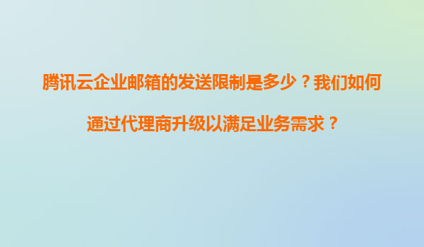 2025-11-09騰訊云企業(yè)郵箱發(fā)送限制詳解與代理商升級(jí)指南 一、騰訊云企業(yè)郵箱的發(fā)送限制解析 騰訊云企業(yè)郵箱作為國(guó)內(nèi)領(lǐng)先的企業(yè)通信解決方案,在保障高效穩(wěn)定的郵件服務(wù)的同時(shí),也設(shè)置了合理的發(fā)送限制策略以防止濫用。以...