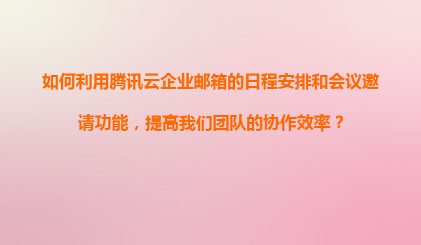 4008-020-360 騰訊云企業(yè)郵箱的日程管理與會(huì)議功能如何賦能團(tuán)隊(duì)協(xié)作 在數(shù)字化轉(zhuǎn)型加速的今天,高效協(xié)作工具已成為企業(yè)發(fā)展的剛需。騰訊云企業(yè)郵箱憑借其深度融合的日程安排與會(huì)議邀請(qǐng)功能,為團(tuán)隊(duì)提供了絲滑流暢的協(xié)同體驗(yàn)。本文...