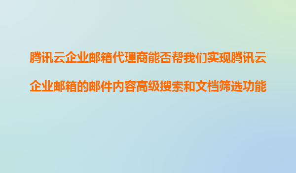 2025-11-09騰訊云企業(yè)郵箱代理商能幫您實(shí)現(xiàn)高級(jí)搜索與文檔篩選功能嗎? 一、騰訊云企業(yè)郵箱的核心優(yōu)勢(shì) 騰訊云企業(yè)郵箱作為國(guó)內(nèi)領(lǐng)先的企業(yè)級(jí)郵件服務(wù)解決方案,具備以下核心功能優(yōu)勢(shì): 海量存儲(chǔ)空間-單...