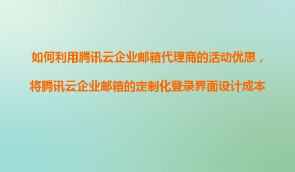 2025-11-09如何利用騰訊云企業(yè)郵箱代理商的活動(dòng)優(yōu)惠,將定制化登錄界面設(shè)計(jì)成本降到最低? 在數(shù)字化轉(zhuǎn)型的浪潮中,企業(yè)郵箱不僅是溝通工具,更是企業(yè)品牌形象的展示窗口。騰訊云企業(yè)郵箱憑借其穩(wěn)定性和豐富的功能,成為眾多企...