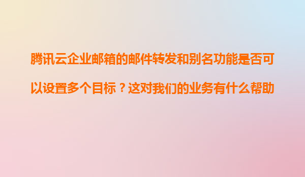 2025-11-09騰訊云企業(yè)郵箱郵件轉(zhuǎn)發(fā)與別名功能解析:如何通過多目標(biāo)設(shè)置助力業(yè)務(wù)發(fā)展 一、騰訊云企業(yè)郵箱核心功能解析 作為國內(nèi)領(lǐng)先的企業(yè)級郵箱解決方案,騰訊云企業(yè)郵箱提供專業(yè)的郵件轉(zhuǎn)發(fā)和別名功能,這兩個功能在...