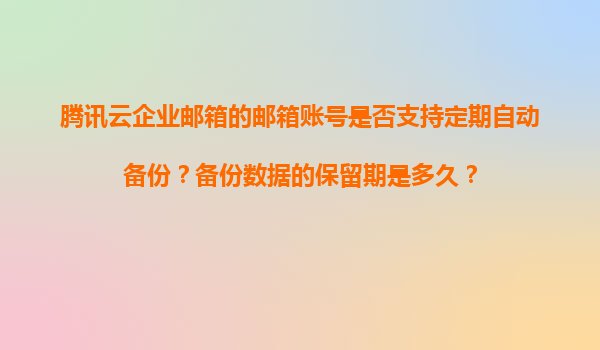 2025-11-09騰訊云企業(yè)郵箱:高效安全的郵件自動備份解決方案 在現(xiàn)代企業(yè)管理中,電子郵件不僅是溝通工具,更是重要數(shù)據(jù)和業(yè)務(wù)記錄的載體。為確保企業(yè)數(shù)據(jù)安全,騰訊云企業(yè)郵箱提供了一套完善的郵件備份方案,幫助企業(yè)用戶輕...