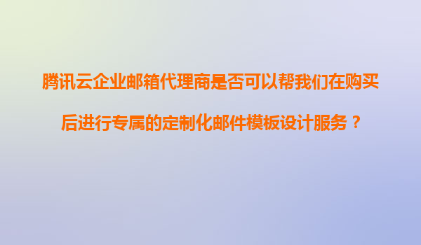 2025-11-08騰訊云企業(yè)郵箱代理商能否提供購買后的專屬郵件模板定制化服務(wù)? 一、騰訊云企業(yè)郵箱代理商服務(wù)范疇 騰訊云企業(yè)郵箱代理商作為官方授權(quán)服務(wù)商,主要提供企業(yè)郵箱的銷售、部署及基礎(chǔ)技術(shù)支持。在購買后的增值服務(wù)方...