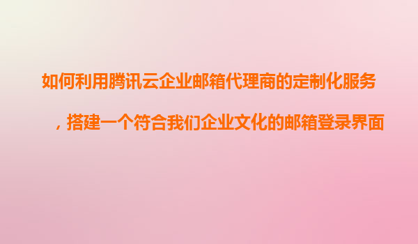如何利用騰訊云企業(yè)郵箱代理商的定制化服務,搭建符合企業(yè)文化的郵箱登錄界面 一、騰訊云企業(yè)郵箱的定制化服務優(yōu)勢解析 騰訊云企業(yè)郵箱作為國內領先的企業(yè)級郵箱解決方案,其代理商提供的定制化服務具備以...