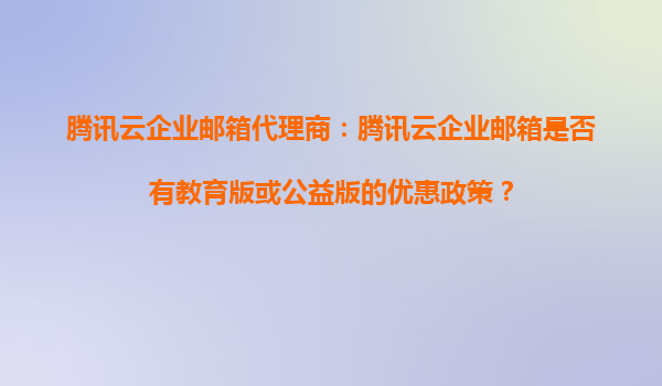 2025-11-04騰訊云企業(yè)郵箱代理商:騰訊云企業(yè)郵箱是否有教育版或公益版的優(yōu)惠政策? 騰訊云企業(yè)郵箱的版本與優(yōu)惠政策概述 騰訊云企業(yè)郵箱作為一款專業(yè)的企業(yè)郵件服務(wù)解決方案,憑借其穩(wěn)定、安全、高效的特性,贏得了...