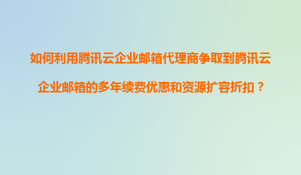 2025-11-04如何利用騰訊云企業(yè)郵箱代理商爭取多年續(xù)費(fèi)優(yōu)惠和資源擴(kuò)容折扣? 一、騰訊云企業(yè)郵箱的核心優(yōu)勢 騰訊云企業(yè)郵箱依托騰訊集團(tuán)20余年郵件系統(tǒng)運(yùn)營經(jīng)驗,提供高安全、高可用的企業(yè)級...