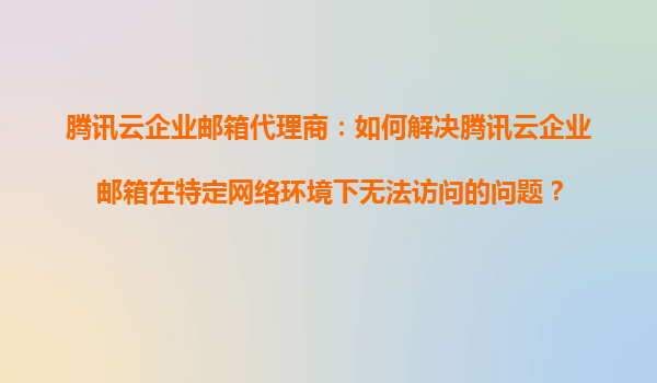 4008-020-360 騰訊云企業(yè)郵箱代理商專業(yè)指南:高效解決網(wǎng)絡(luò)訪問難題 網(wǎng)絡(luò)環(huán)境差異引發(fā)的訪問問題解析 在日常使用騰訊云企業(yè)郵箱時(shí),部分用戶可能因辦公場(chǎng)所網(wǎng)絡(luò)策略、跨境訪問或本地DNS解析等因素,遇到無法正常登錄郵箱...