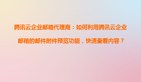 2025-11-03騰訊云企業(yè)郵箱代理商:如何利用騰訊云企業(yè)郵箱的郵件附件預(yù)覽功能快速查看內(nèi)容? 一、騰訊云企業(yè)郵箱的核心優(yōu)勢(shì) 騰訊云企業(yè)郵箱作為國(guó)內(nèi)領(lǐng)先的企業(yè)級(jí)郵件服務(wù),憑借騰訊云強(qiáng)大的技術(shù)支撐...